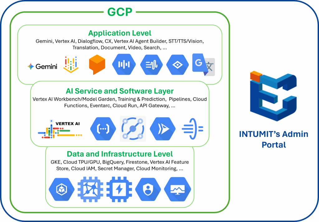 INTUMIT partners with Google Cloud Platform to deliver intelligent, scalable AI solutions across enterprise environments. By integrating GCP’s advanced tools such as Gemini, Vertex AI, and Dialogflow CX, we build multilingual conversational agents, automate workflows, and enhance customer engagement across multiple channels.