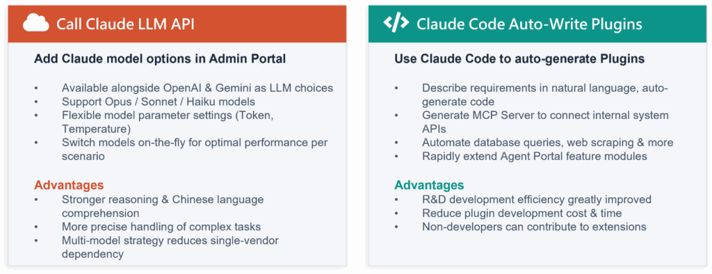 Combined with Anthropic Claude and INTUMIT’s Agentic AI orchestration, our Agentic AI Portal now supports the Model Context Protocol (MCP) framework established by Anthropic, allowing us to enable seamless integration with a wide range of MCP-compatible data sources and agents. This empowers us to deliver enterprise-level intelligence that’s ethical, scalable, and deeply embedded into client workflows and tasks by training its models and managing interactions with applications and databases.